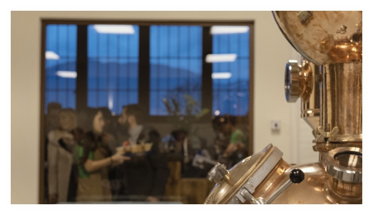 La zona distillazione è completamente a vista in modo da rendere la produzione trasparente al 100%